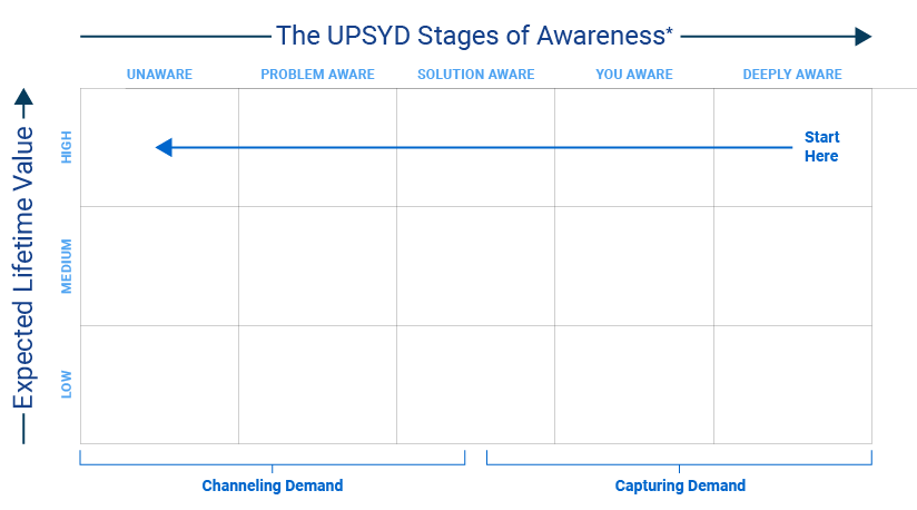 How the UPSYD helps: Layering the UPSYD framework into your content creation process helps prioritize content geared toward deeply aware accounts and personas. Also, it can even serve as an effective framework for mapping content by awareness stage.